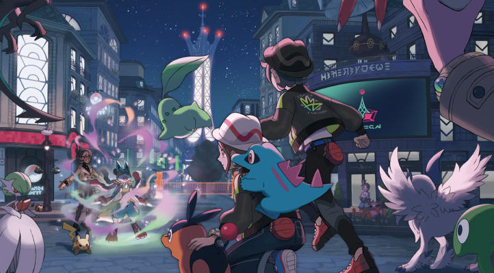 本作は日中は野生のポケモンが街に現れ、夜はバトルの催しがあるという設定である為、どちらかといえば夜がメインなのは間違いないのだろうけど……この絵をバンとメインに持ってくるのは、なかなか攻めたなという印象。